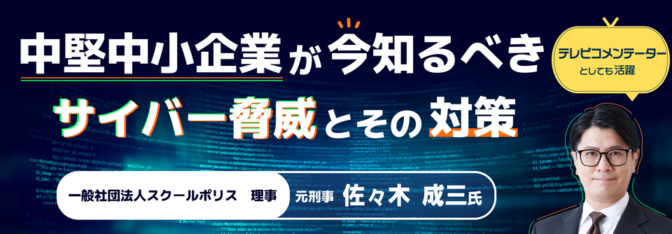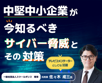 本セミナーでは、元埼玉県警捜査一課の刑事で、現在はテレビ番組のコメンテーターとしても活躍する佐々木成三氏に登壇いただきます。埼玉県警での22年間のご経験や、デジタル捜査班の班長として数々の事件に関わってきた実績をもとに、現場目線でリアルなサイバーリスクを解説いただきます。